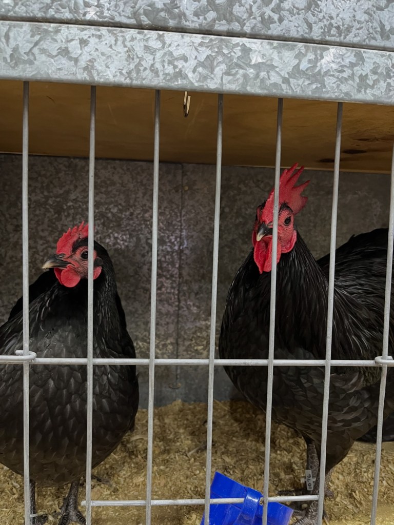 I went to the Sydney Royal Easter Show with my partner on Easter Saturday. I like to look at the exhibits. I particularly like looking at the chooks. This trio of Australorp Bantams.